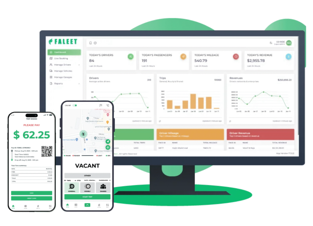 Faleet is an all-in-one taxi dispatch and ride-hailing platform designed for businesses to manage transportation operations efficiently. It includes driver and customer apps, a dispatcher panel, and an admin dashboard — everything needed to run a modern on-demand transport business.